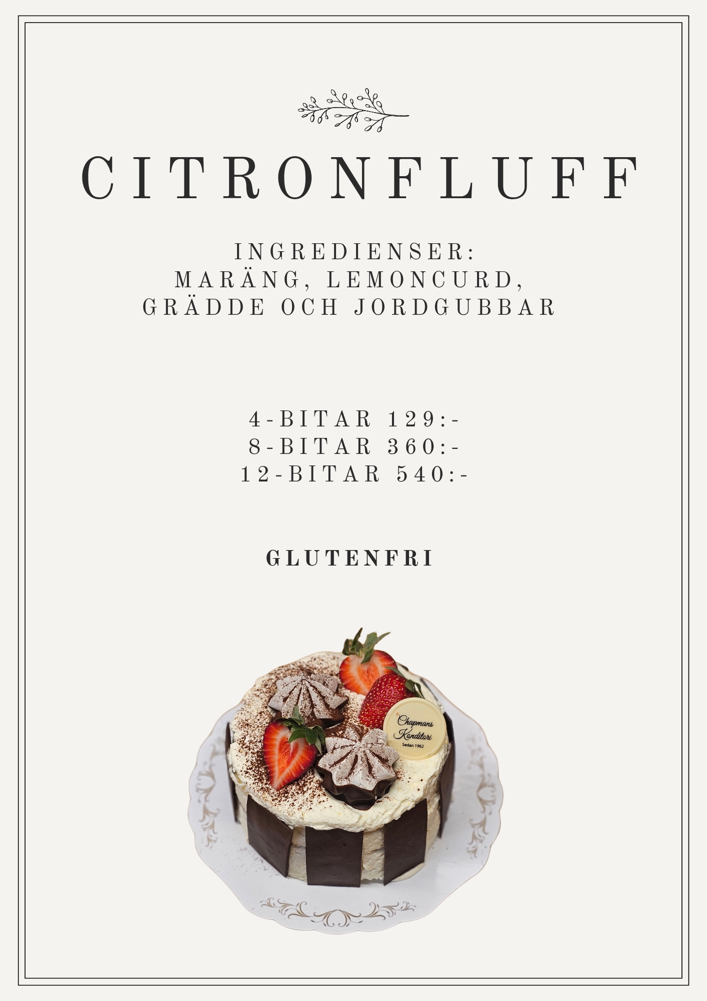- Glutenfritt alternativ - valfri bakelse/landgång.