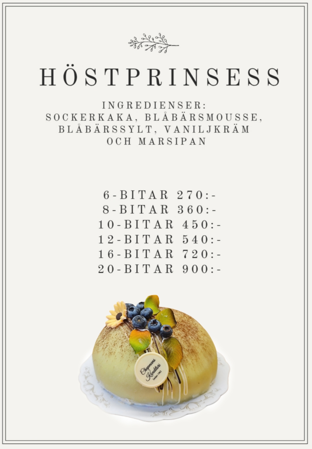 - Laktosfri prinsesstårta 55:-/bit (6,8 & 10-bitar)