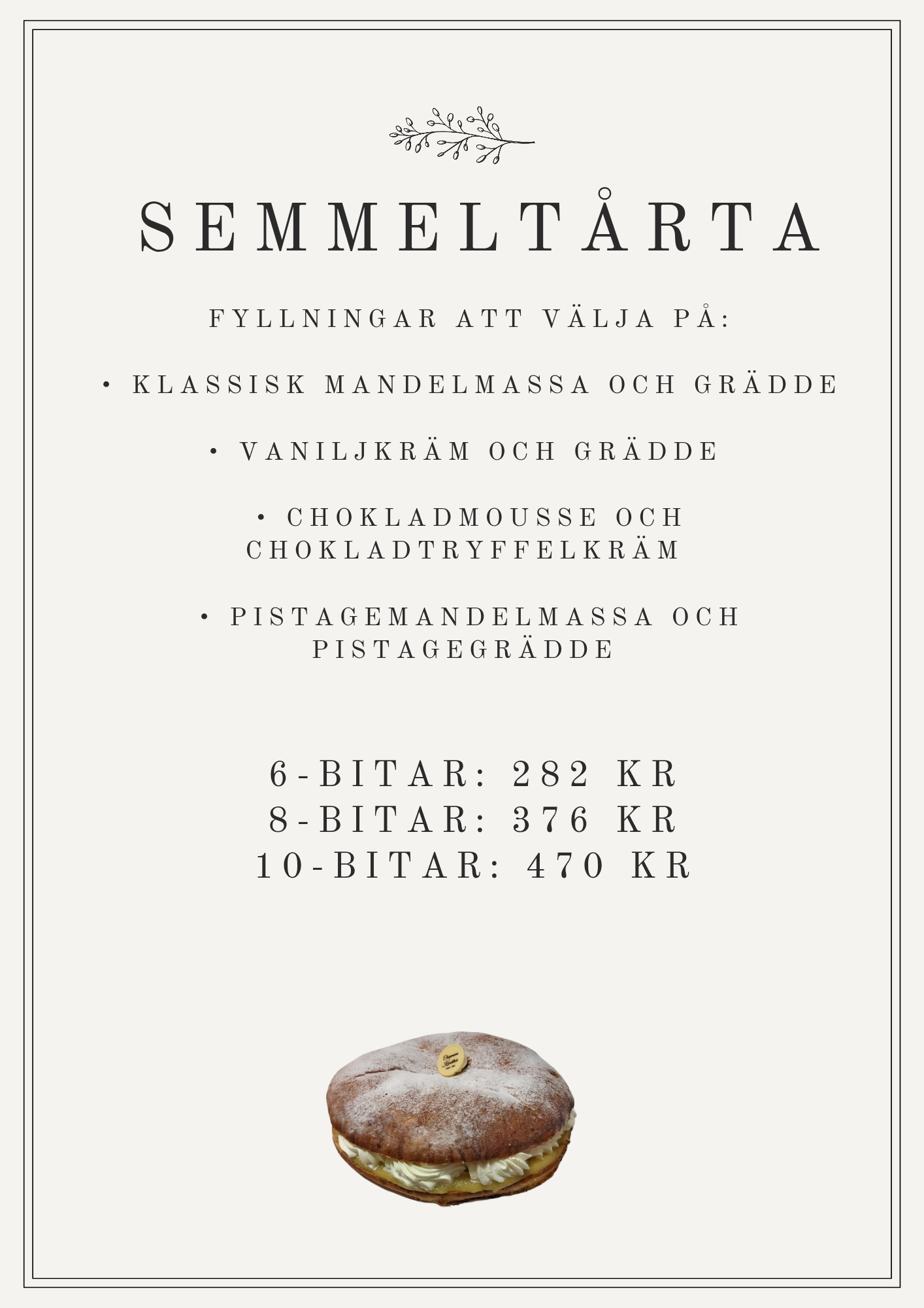 - Önskemål utöver standard 55:-/bit - T.ex randig, hjärtformadtårta, byta ut grädde mot valfri mousse